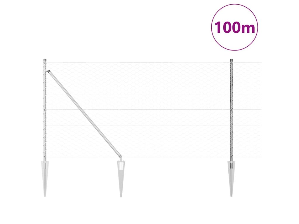 Plotový sloupek. Stříbrná 100 x 1 m (50 mm síť) Ocel 3353451