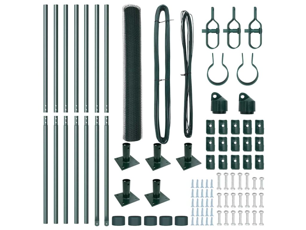 Plotový sloupek. Zelená 10 x 1,2 m (25 mm síť) Ocel a PVC 3353485