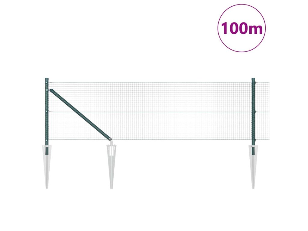 Plotový sloupek. Zelená 100 x 0,8 m (19 x 19 mm síť) Ocel a PVC 3352143