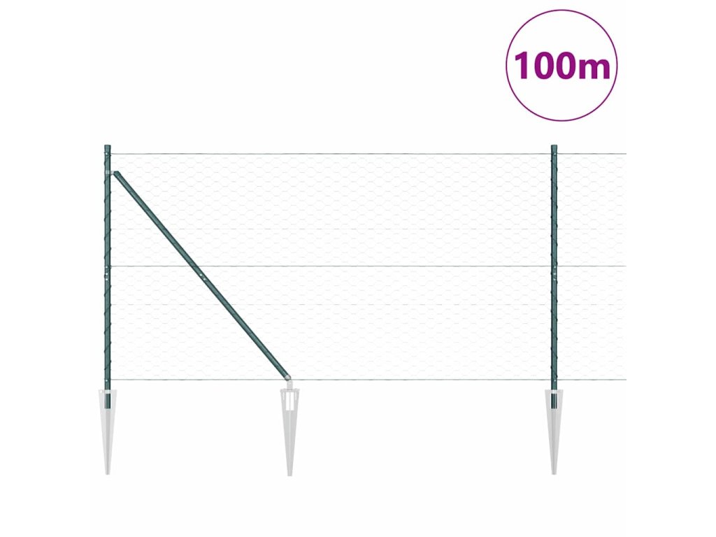Plotový sloupek. Zelená 100 x 1,4 m (50 mm síť) Ocel a PVC 3353176