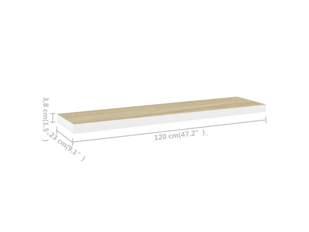 Plovoucí nástěnné police 2 ks dub a bílé 120x23,5x3,8 cm MDF 326586