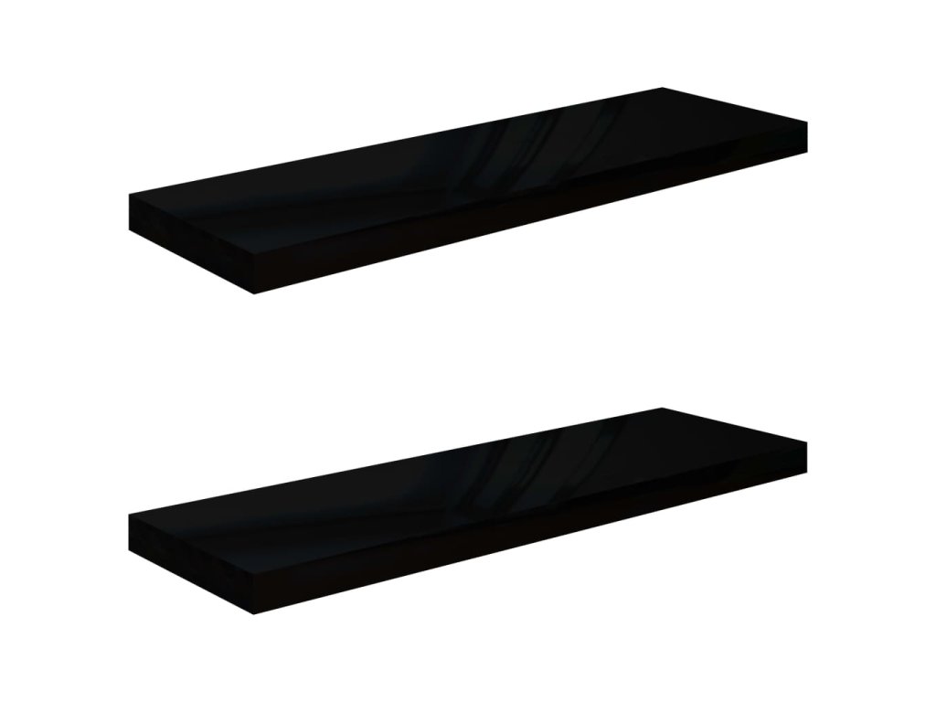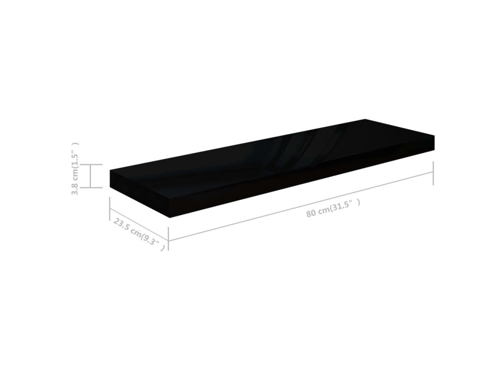Plovoucí nástěnné police 2 ks lesklé černé 80x23,5x3,8 cm MDF 323773