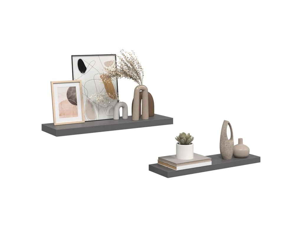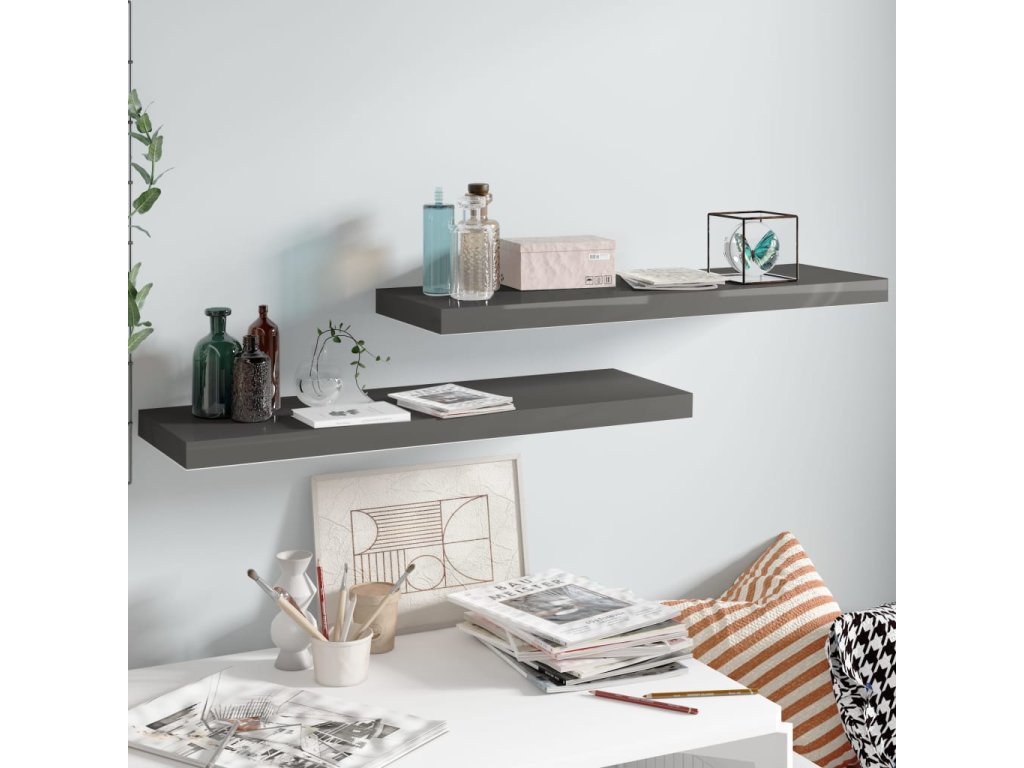Plovoucí nástěnné police 2 ks lesklé šedé 80x23,5x3,8 cm MDF 323794