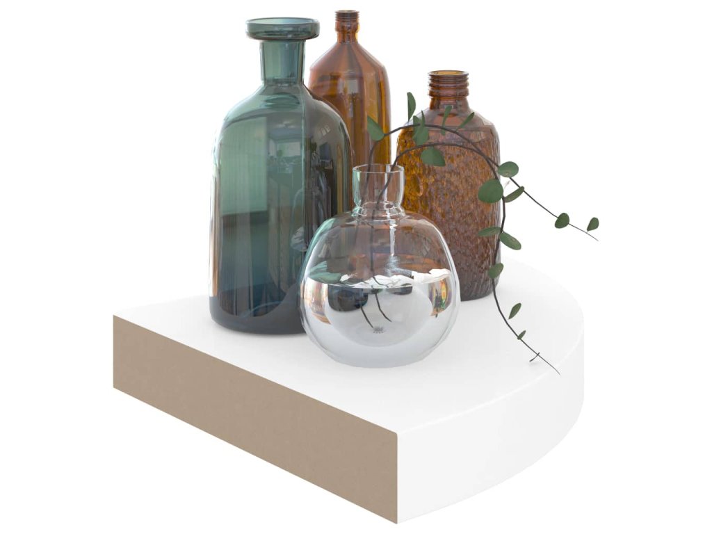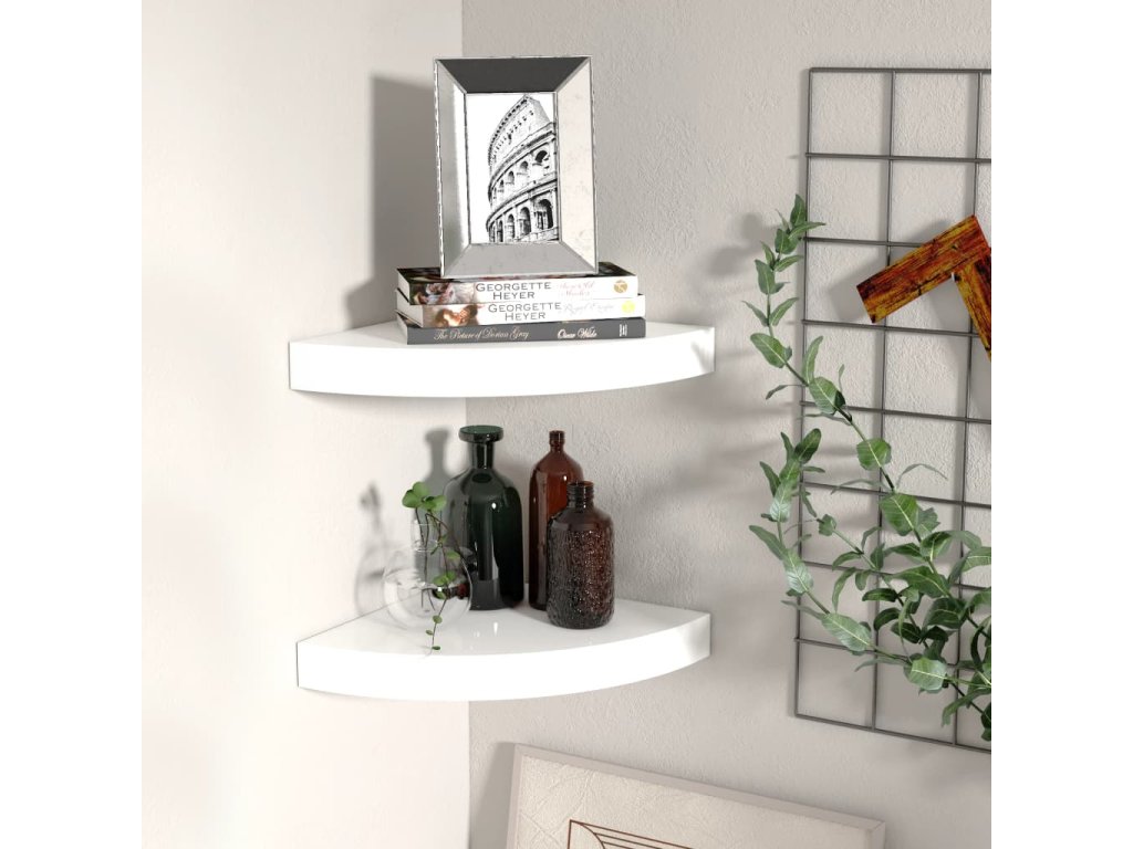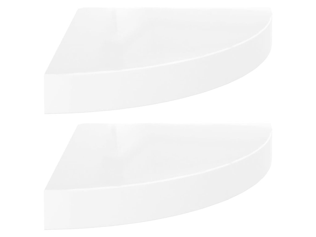 Plovoucí rohové police 2 ks, vysoce lesklé bílé, 25 x 25 x 3,8 cm, MDF 323887