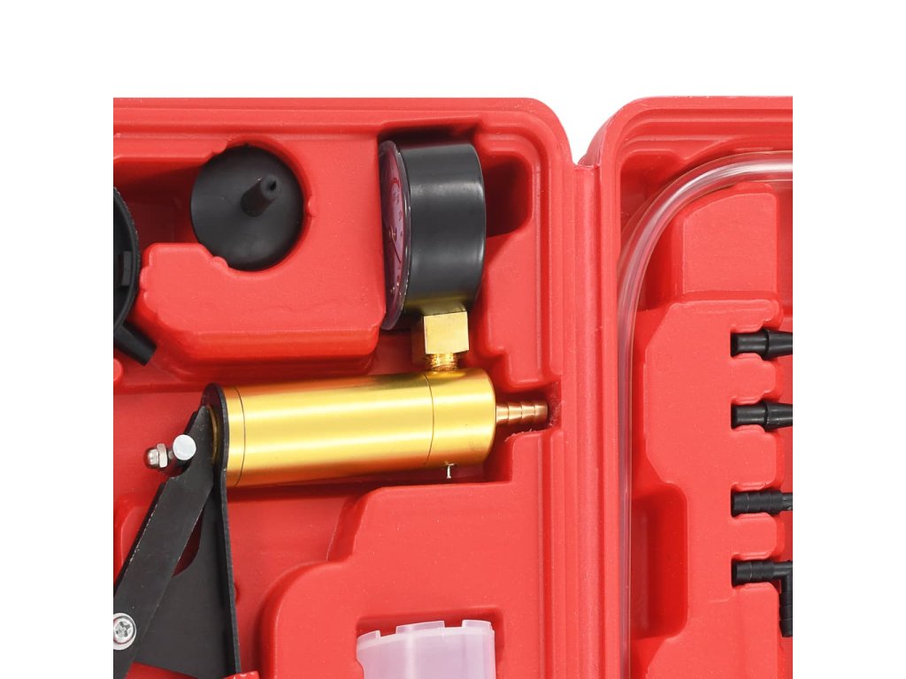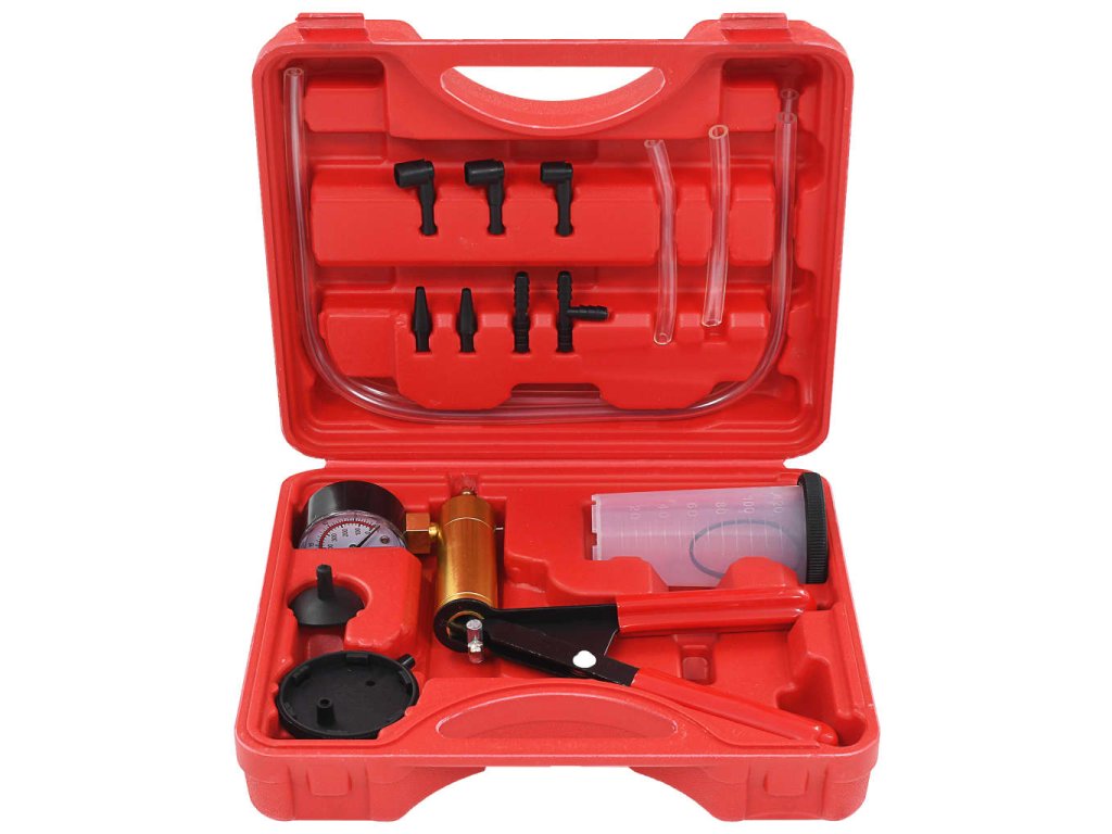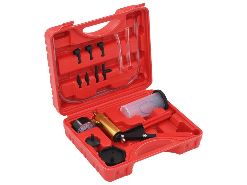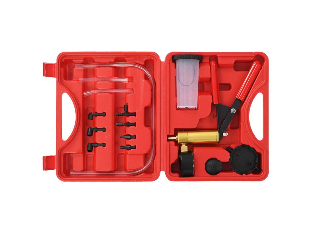 Podtlaková pumpa na odvzdušnění brzd s příslušenstvím je sada nástrojů, která kombinuje dvě funkce v jednom praktickém nástroji. Je ideální pro kontrolu těsnění potrubí, ventilů, sání a pro odvzdušňování brzdových systémů nebo hydraulických spojů.