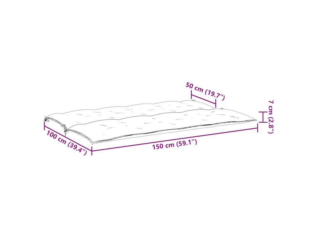 - Celkové rozměry: 150 x (50+50) x 7 cm (D x Š x T)