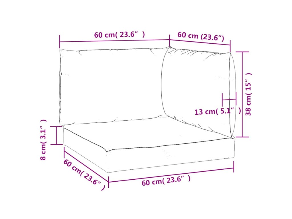 - Rozměry bočních polštářů: 60 x 38 x 13 cm (D x Š x V)