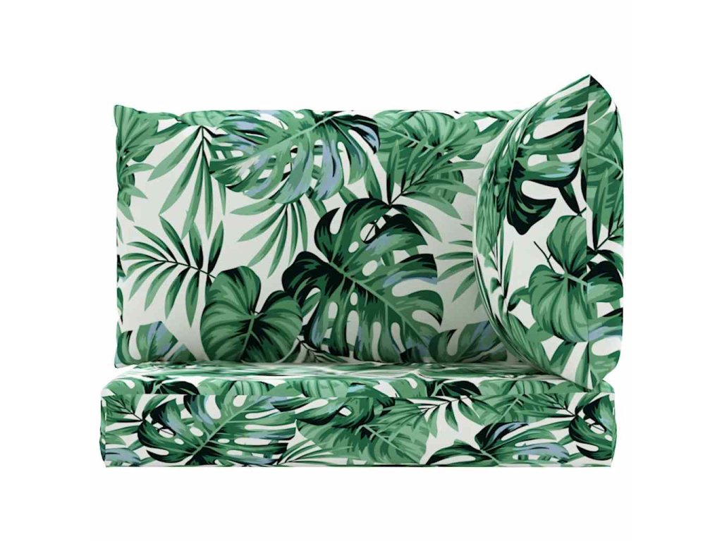 Podušky na nábytek z palet 3 ks vzor listů oxfordská tkanina 379161