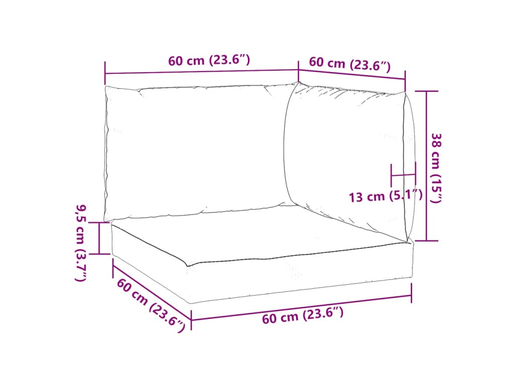 - Rozměry bočních polštářů: 60 x 38 x 13 cm (D x Š x V)