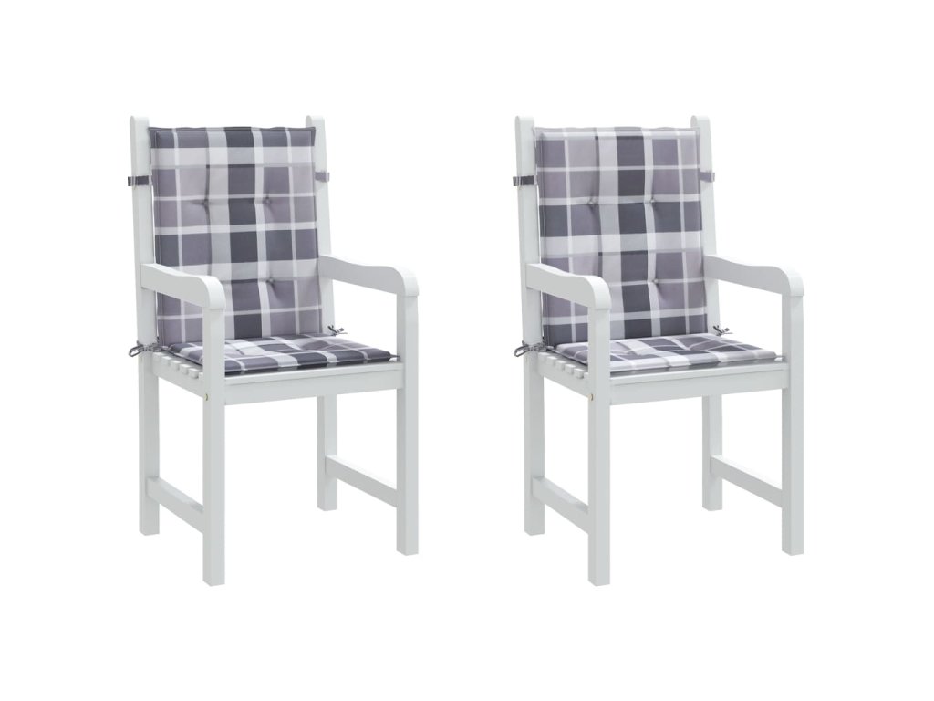Podušky na židli nízké opěradlo 2 ks šedé kárované 100x50x3 cm 314155