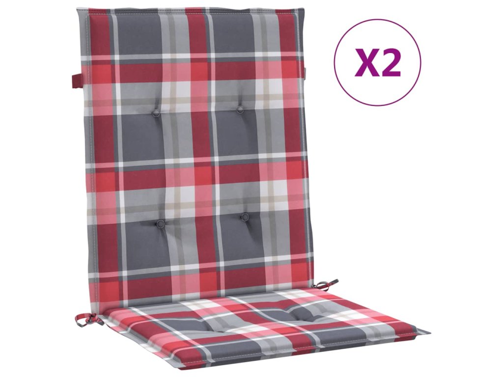 Podušky na židli nízké opěradlo 2ks červené kárované 100x50x3cm 314152