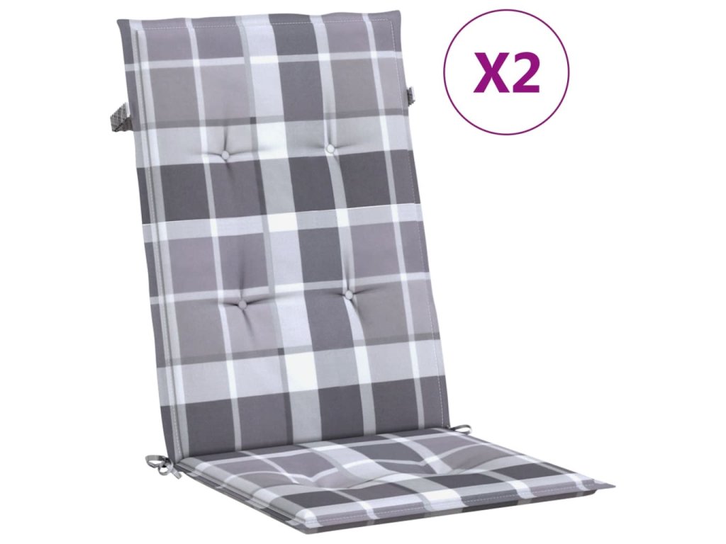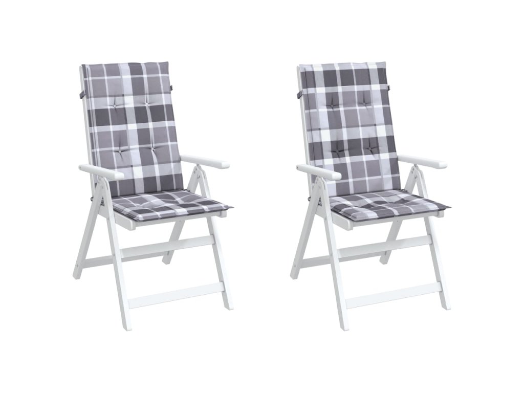 Podušky na židli vysoké opěradlo 2 ks šedé kárované 120x50x3 cm 314128