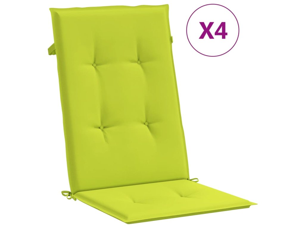 Podušky na židli vysoké opěradlo 4 ks jasně zelené 120x50x3 cm 314120
