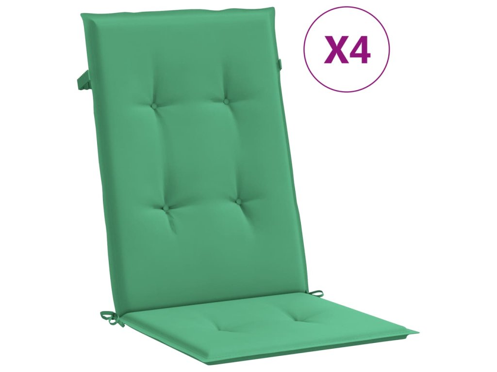 Podušky na židli vysoké opěradlo 4 ks zelené 120x50x3 cm textil 43186