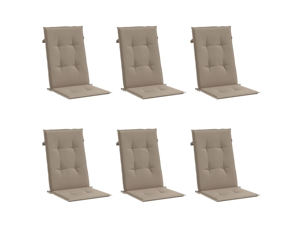 Podušky na židli vysoké opěradlo 6 ks taupe 120x50x3 cm textil 314112