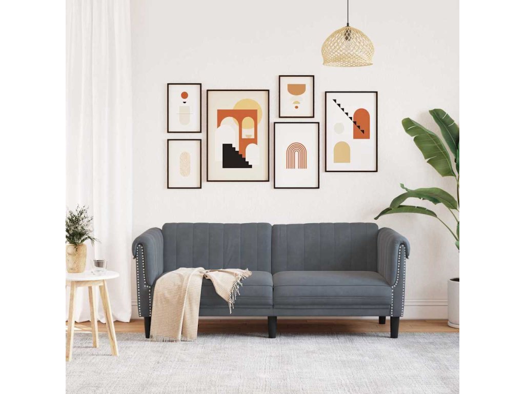 Pohovka 2místná tmavě šedá samet 372576