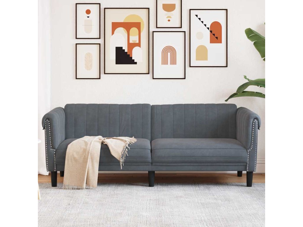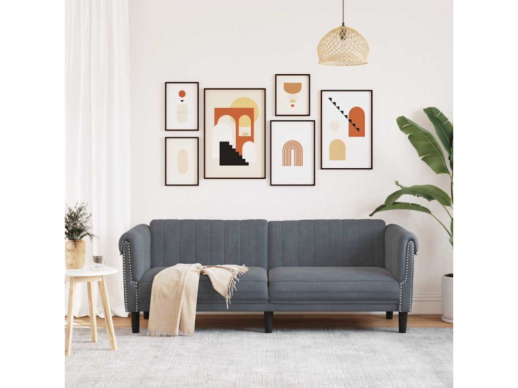 Pohovka 3místná tmavě šedá samet 372586