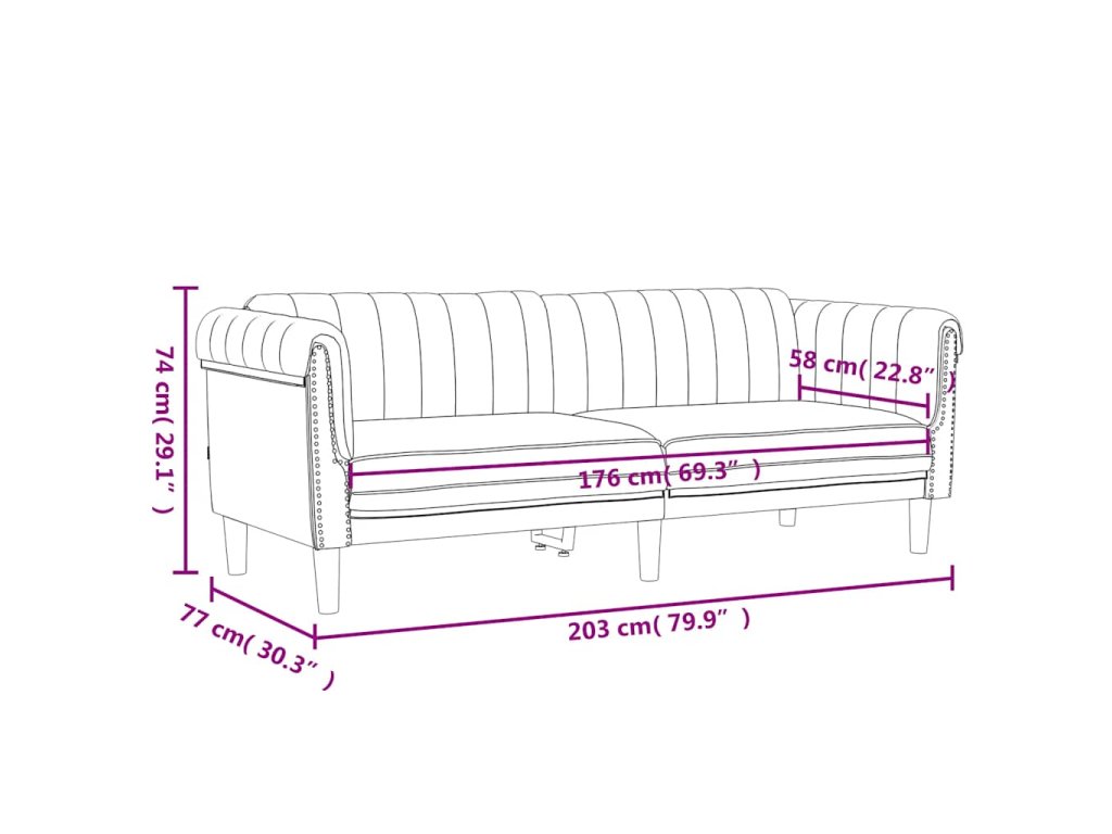 - Celkové rozměry: 203 x 77 x 74 cm (Š x H x V)