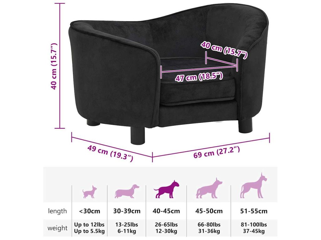 Pohovka pro psy černá 69 x 49 x 40 cm plyš 171021