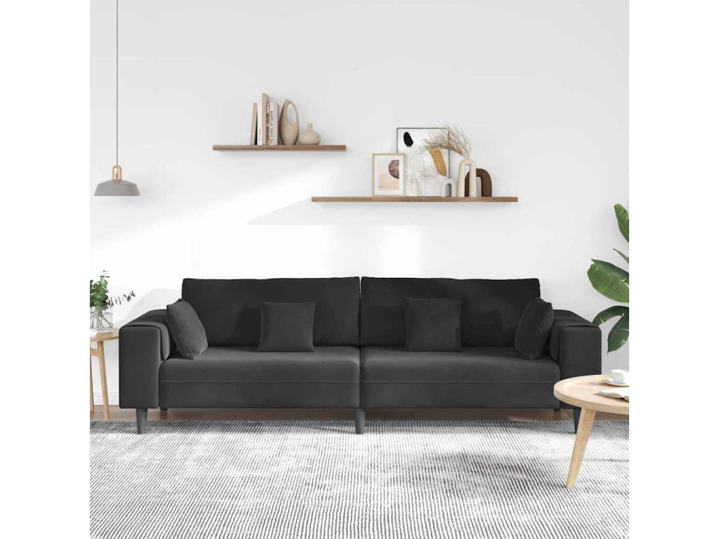 Pohovka s polštářem Černá 250 x 77 x 76 cm samet 3335158