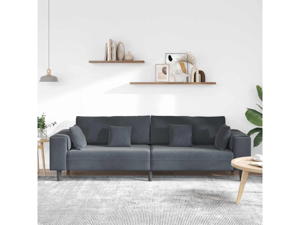 Pohovka s polštářem Tmavě šedá 250 x 77 x 76 cm samet 3335154