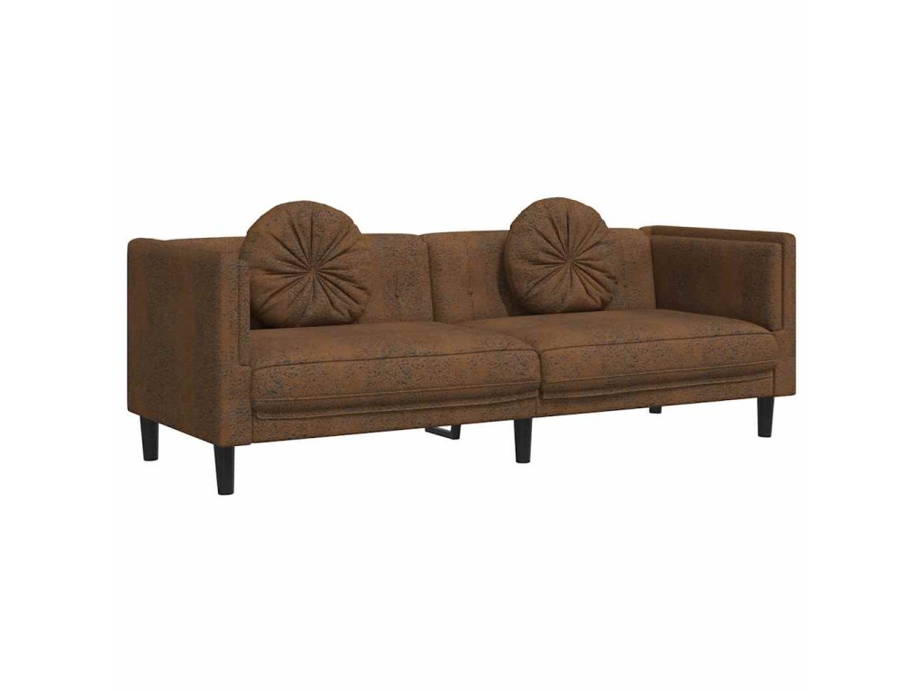 Pohovka s polštáři 3místná hnědá umělá semišová kůže 372651