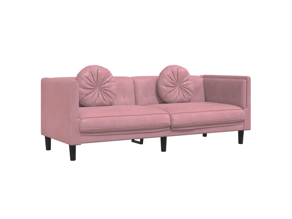 Pohovka s polštáři 3místná růžová samet 372645
