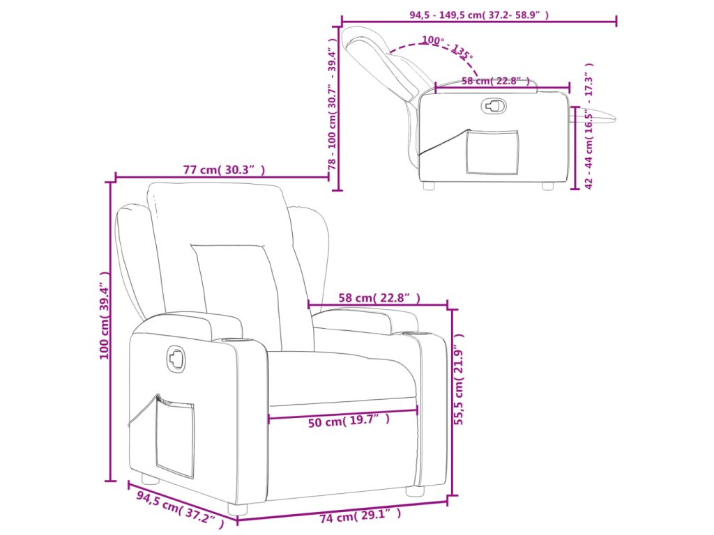 - Rozměry vsedě: 77 x 94,5 x 100 cm (Š x H x V)