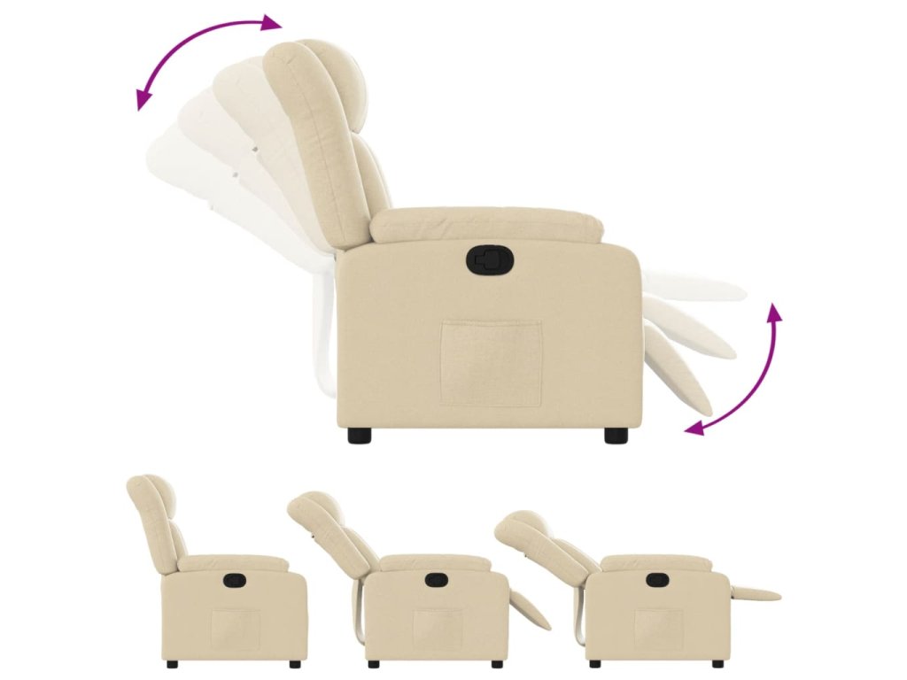 - Manuální funkce polohování: Toto polohovací křeslo má madlo na pravé straně. Opěrku nohou a opěradlo můžete ručně nastavit do libovolné polohy podle vašich potřeb jednoduchým zatažením za madlo. Tato funkce umožňuje maximální sklon 135 stupňů. Opěradlo se navíc snadno vrátí do původní polohy zatažením za madlo.
