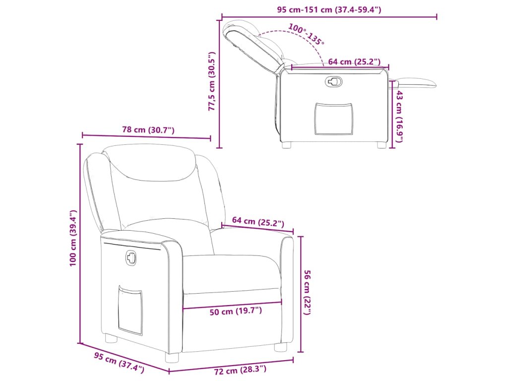 - Funkce ručního sklápění: Toto polohovací křeslo má na pravé straně páčku. Jednoduchým zatažením za páčku můžete ručně nastavit opěrku nohou a opěradlo do libovolné polohy podle svého pohodlí. Tato funkce umožňuje maximální náklon 135 stupňů. Opěradlo se navíc může snadným zatažením za páčku rychle vrátit do původní polohy.
