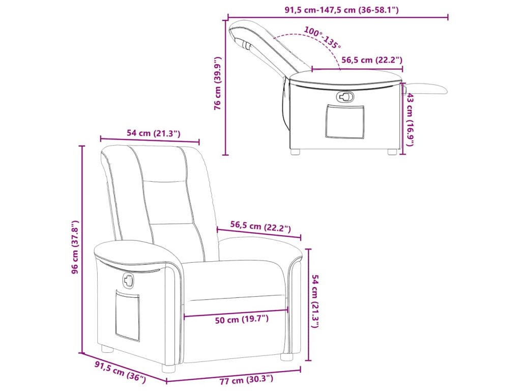 - Funkce ručního sklápění: Toto polohovací křeslo má na pravé straně páčku. Jednoduchým zatažením za páčku můžete ručně nastavit opěrku nohou a opěradlo do libovolné polohy podle svého pohodlí. Tato funkce umožňuje maximální náklon 135 stupňů. Opěradlo se navíc může snadným zatažením za páčku rychle vrátit do původní polohy.