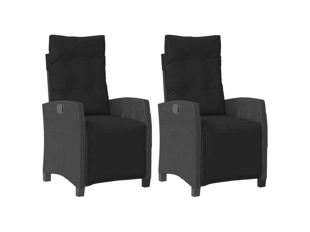 Polohovací zahradní křesla 2 ks s podnožkou černá polyratan 365241