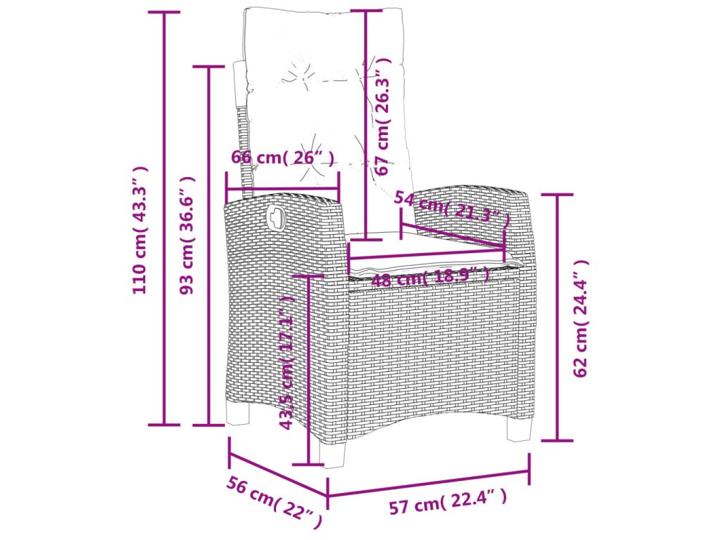 - Rozměry při poloze vsedě: 57 x 66 x 93 cm (Š x H x V)