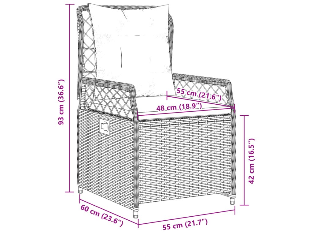 - Rozměry při poloze vsedě: 55 x 60 x 93 cm (Š x H x V)