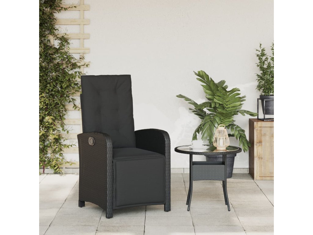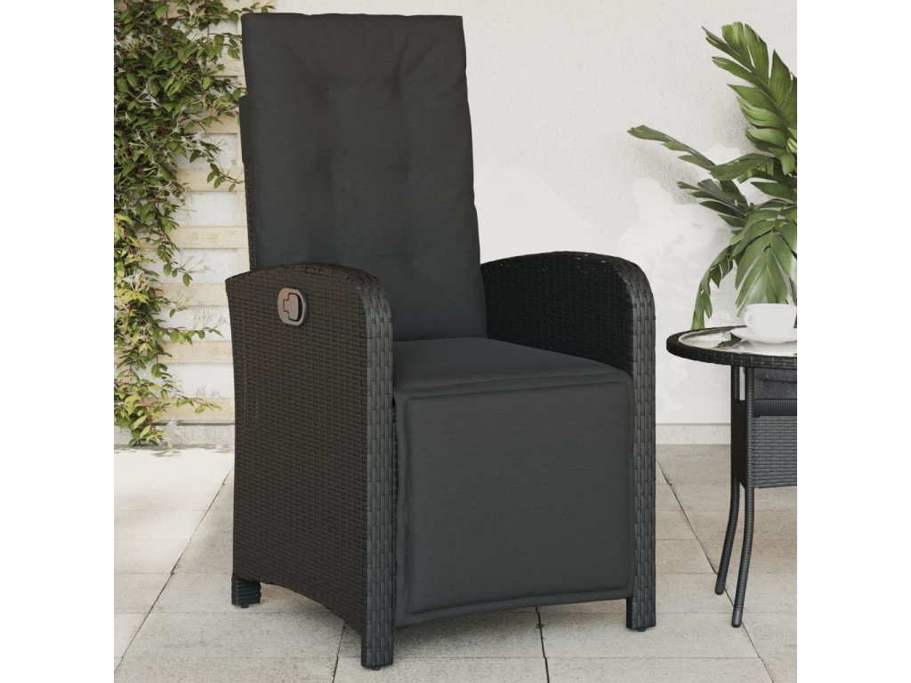 Polohovací zahradní křeslo s podnožkou černé polyratan 365185