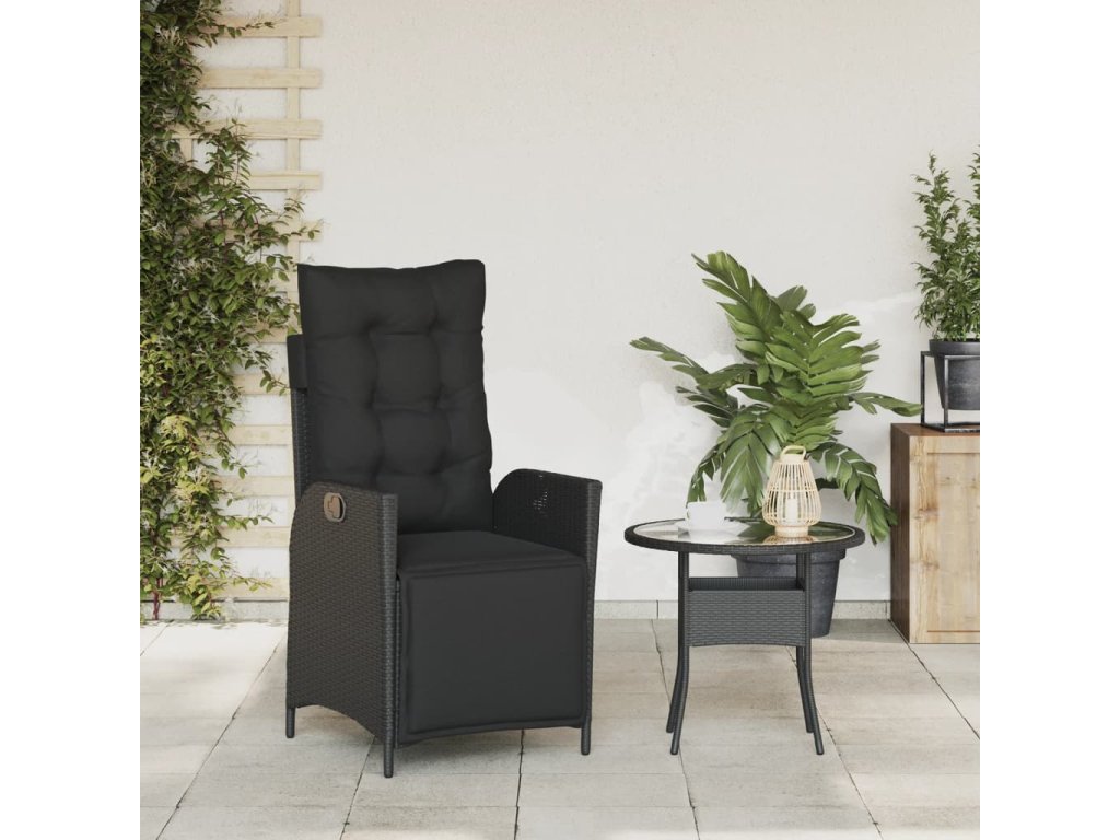 Polohovací zahradní křeslo s podnožkou černé polyratan 365281