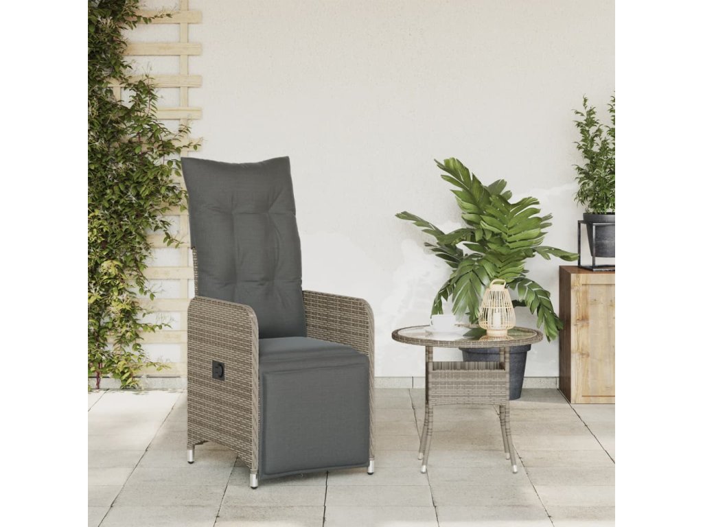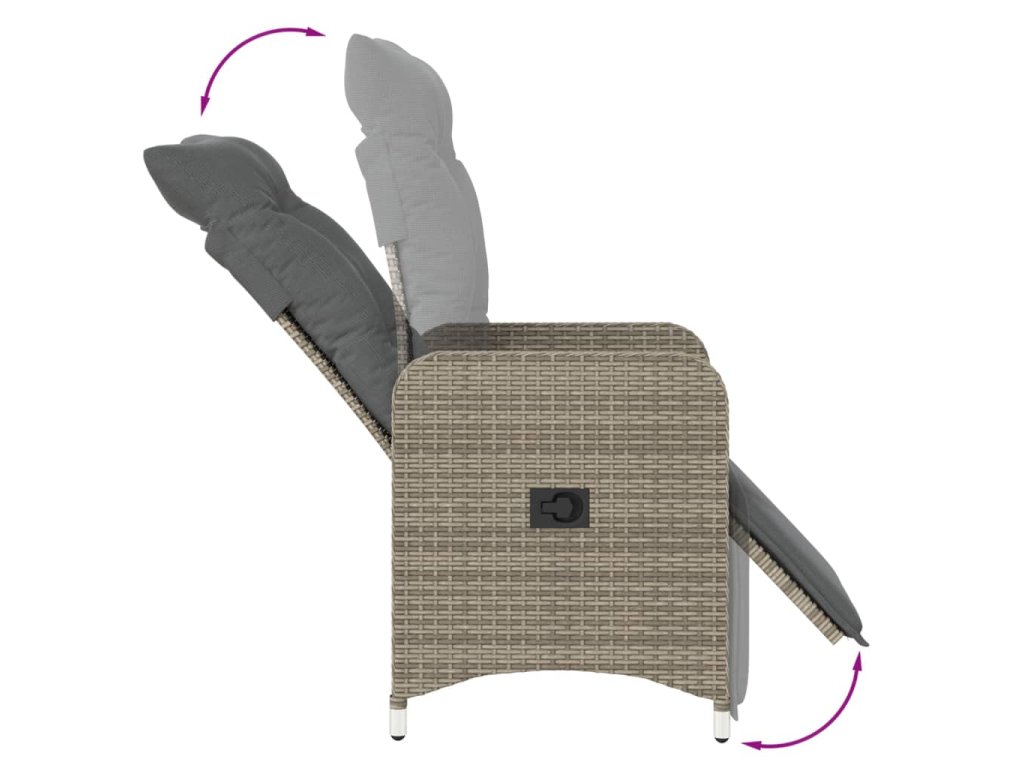 Polohovací zahradní křeslo s poduškami šedé polyratan 365697