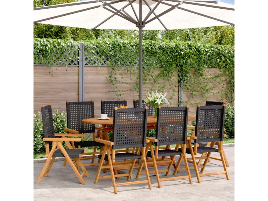 Polohovací zahradní židle 8 ks černé polyratan a masivní dřevo 3214522