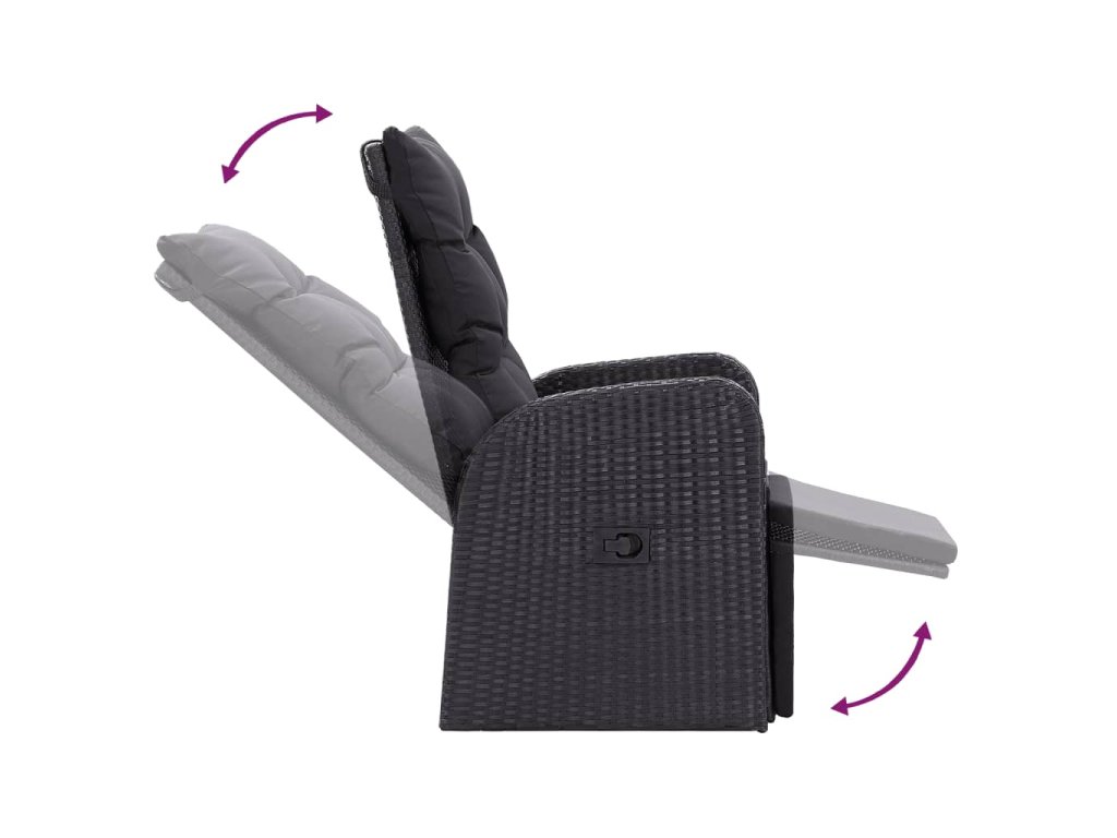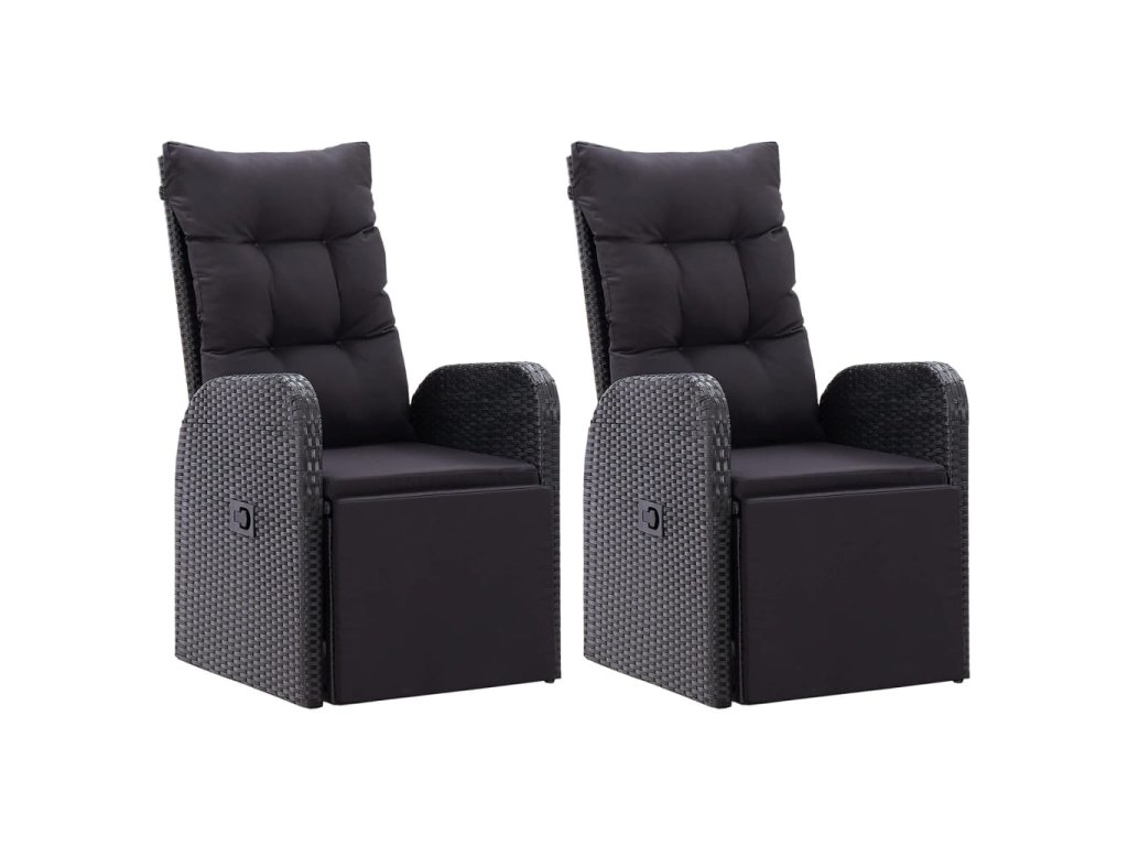 Polohovací zahradní židle s poduškami 2 ks černé polyratan 319544