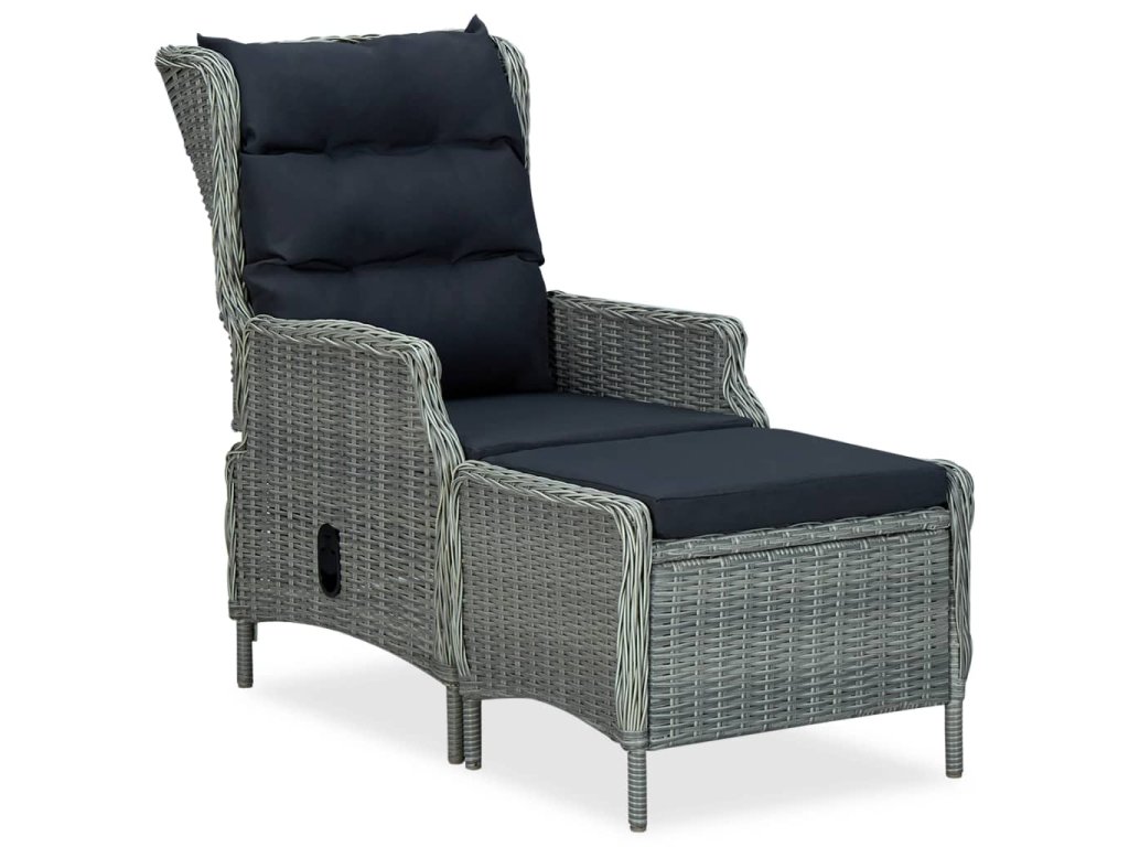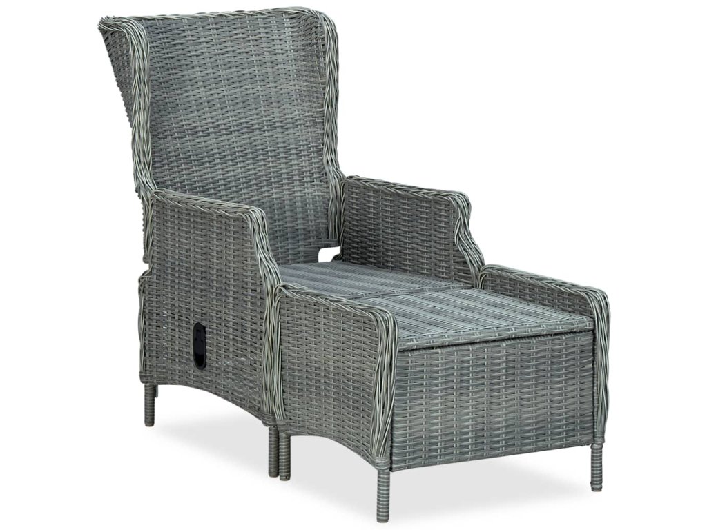 Polohovatelné zahradní křeslo s podnožkou polyratan světle šedé 313304