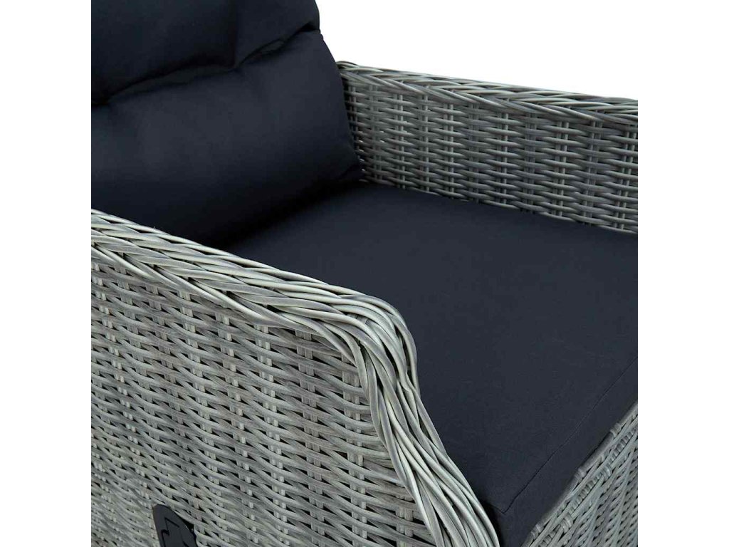 Zahradní židle má práškově lakovaný ocelový rám, který je potažený kulatým PE ratanem. Židle je robustní a snadno se čistí. Na silně polstrovaných poduškách se příjemně odpočívá. Potahy na poduškách mají zip, takže je můžete snadno sejmout a vyprat. Opěradlo lze nastavit pomocí mechanismu s plynovým pístem do polohy, která vám právě nejvíce vyhovuje. Stisknutím tlačítka na boku můžete opěradlo zcela sklopit do pohodlné polohy vleže. Konstrukce zahradní židle je navíc lehká, což usnadňuje její přenášení.