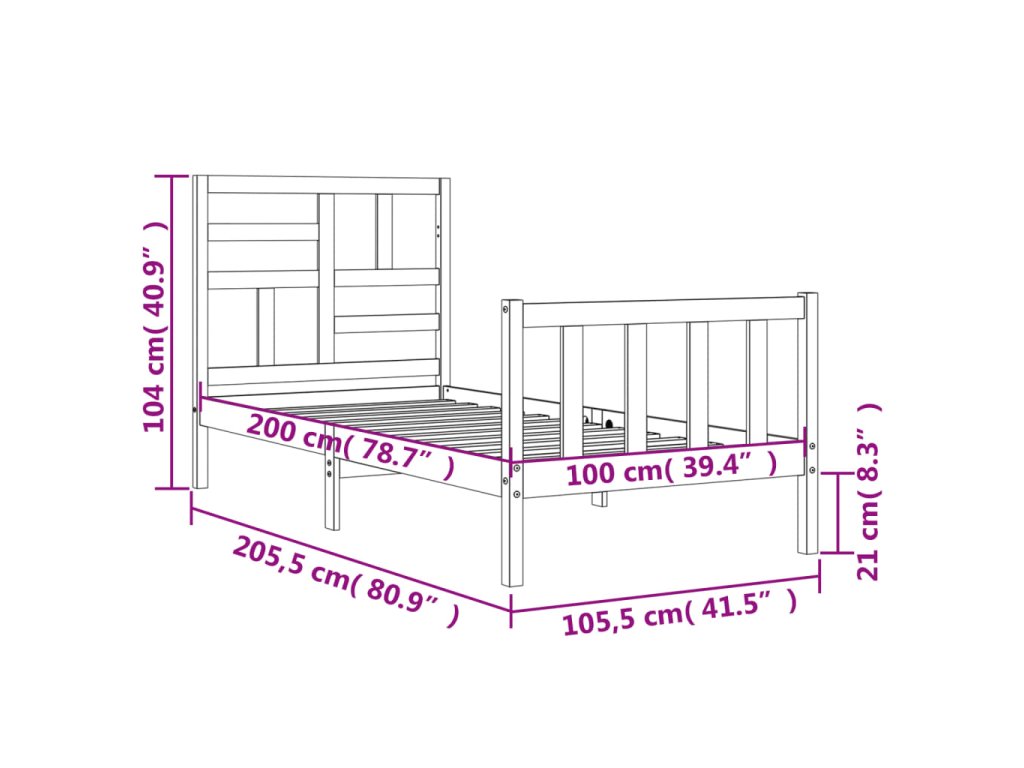 - Celkové rozměry postele: 205,5 x 105,5 x 104 cm (D x Š x V)
