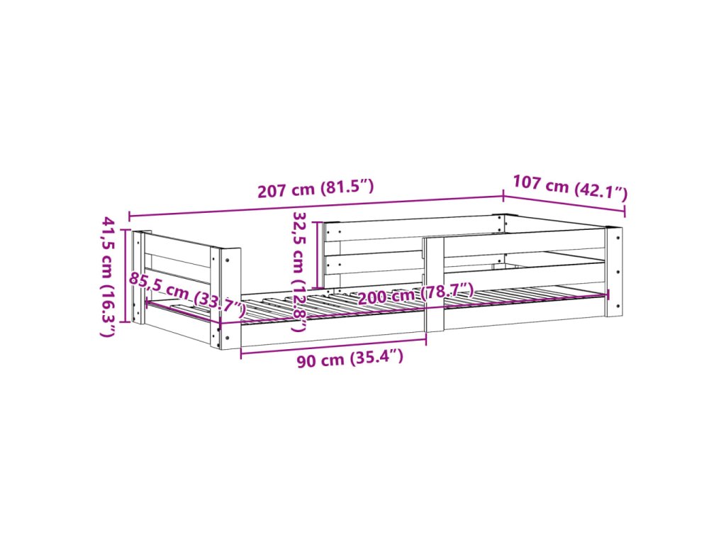 - Rozměry: 207 x 107 x 41,5 cm (D x Š x V)