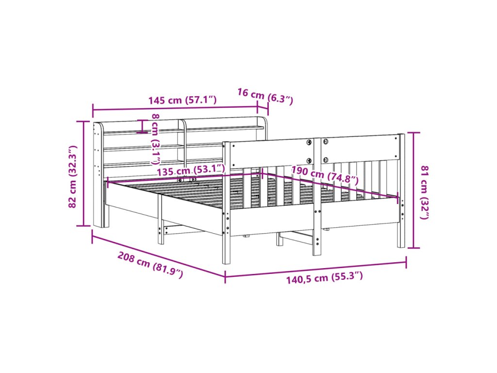 Postel bez matrace 135 x 190 cm masivní borovice 3307020