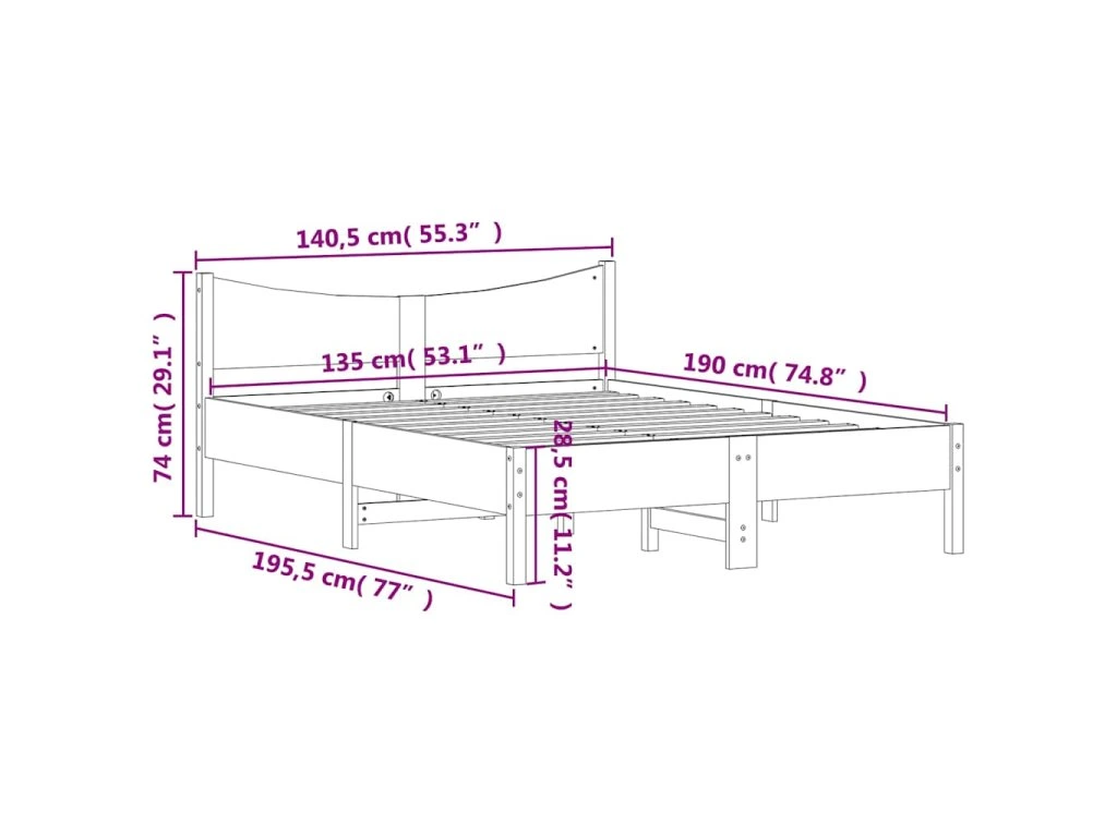Postel bez matrace 135 x 190 cm masivní borovice 844745