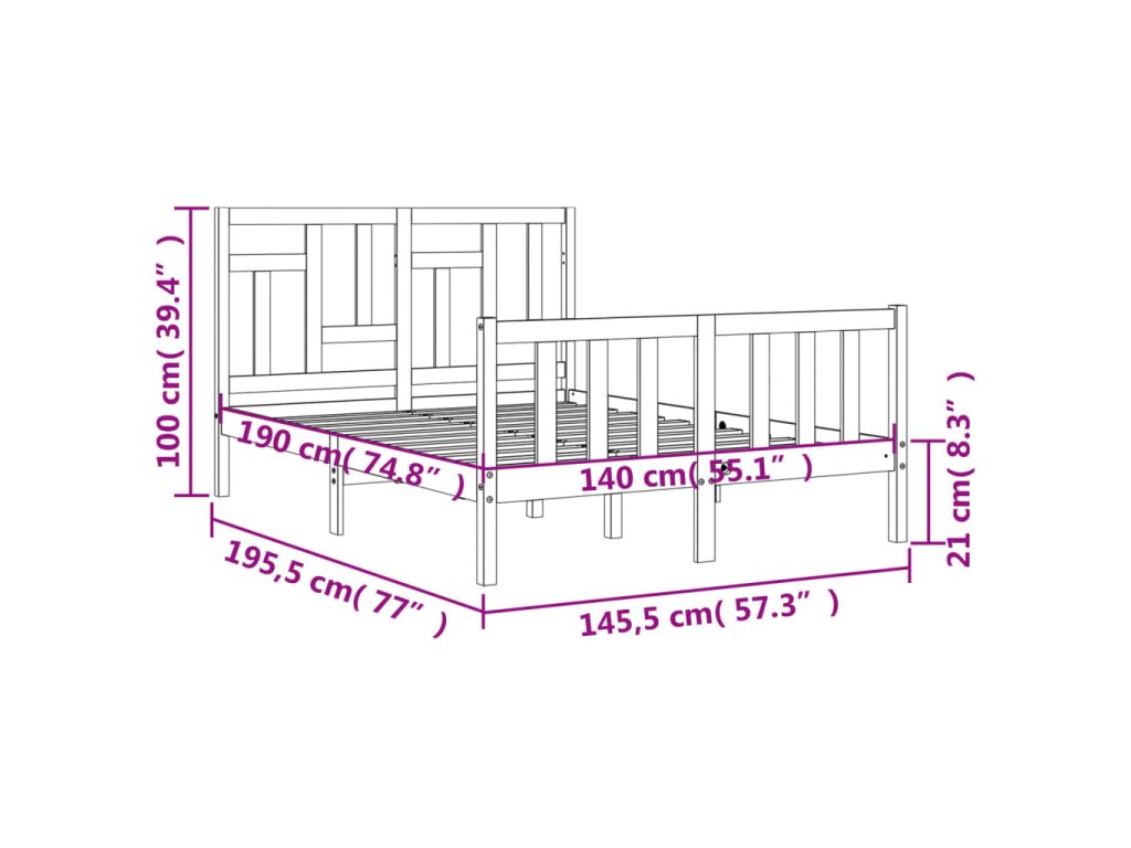 - Celkové rozměry postele: 195,5 x 145,5 x 100 cm (D x Š x V)