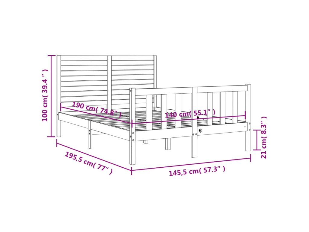 - Celkové rozměry postele: 195,5 x 145,5 x 100 cm (D x Š x V)
