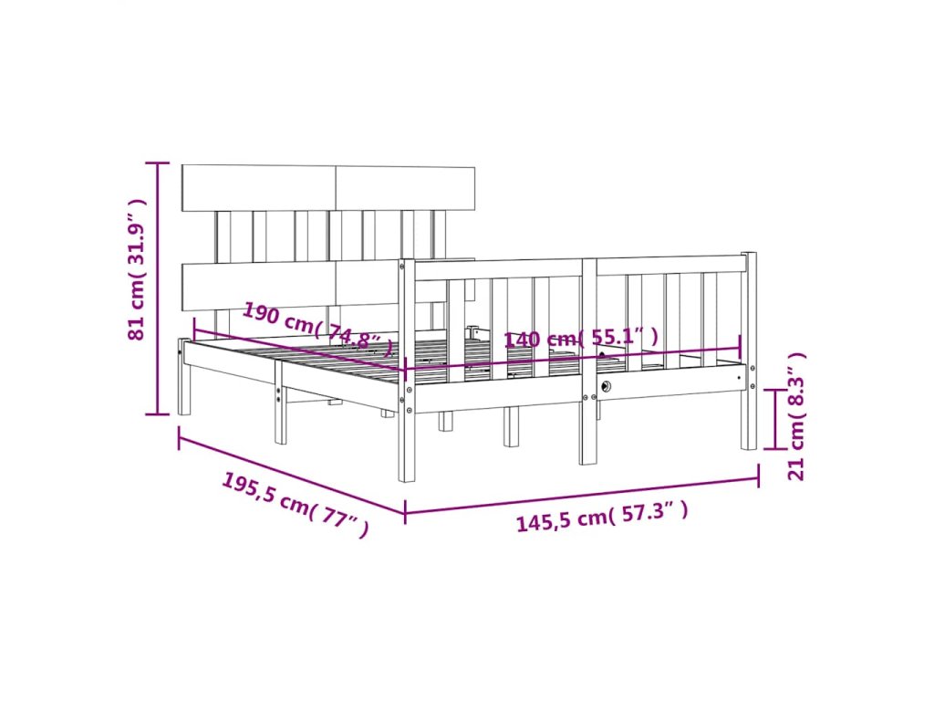 - Celkové rozměry postele: 195,5 x 145,5 x 81 cm (D x Š x V)