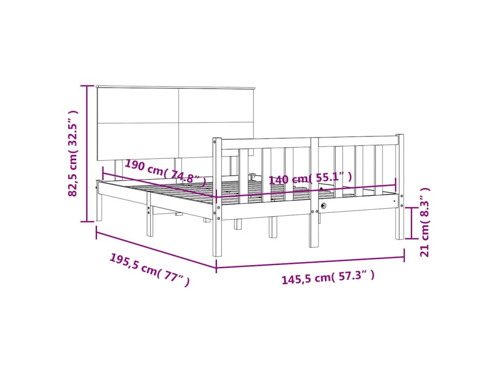 - Celkové rozměry postele: 195,5 x 145,5 x 82,5 cm (D x Š x V)