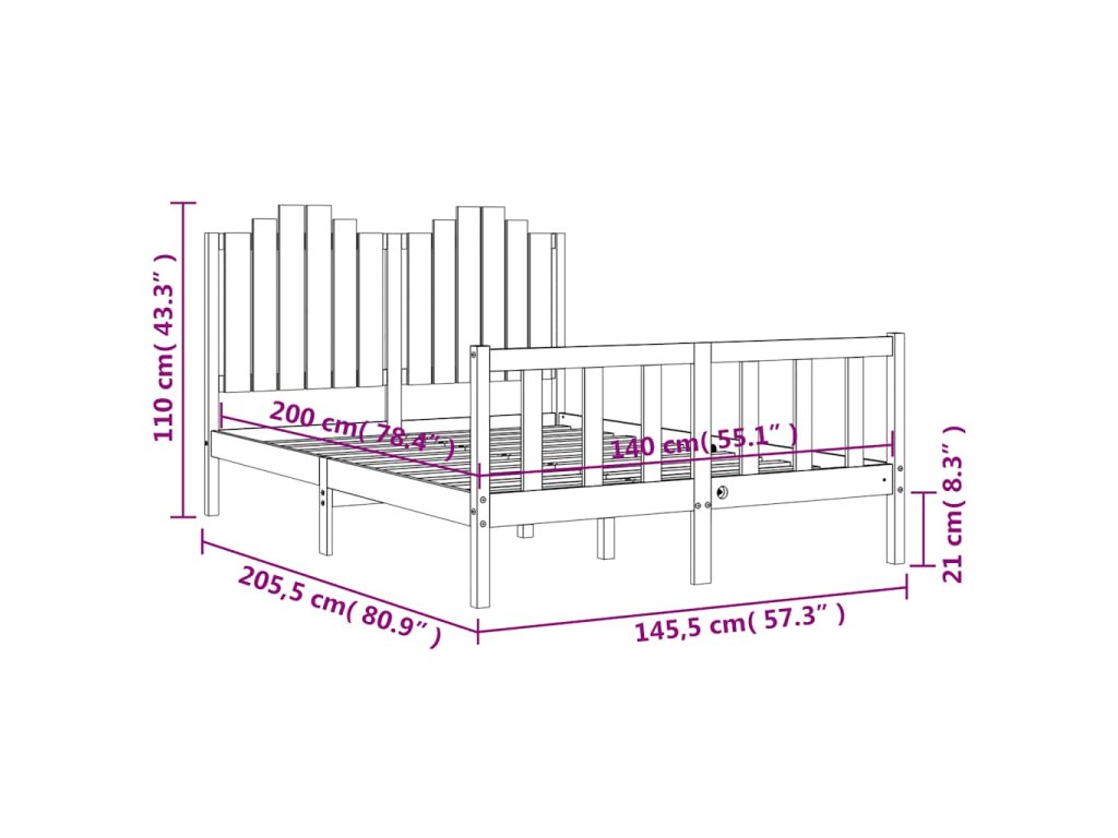 - Celkové rozměry postele: 205,5 x 145,5 x 110 cm (D x Š x V)